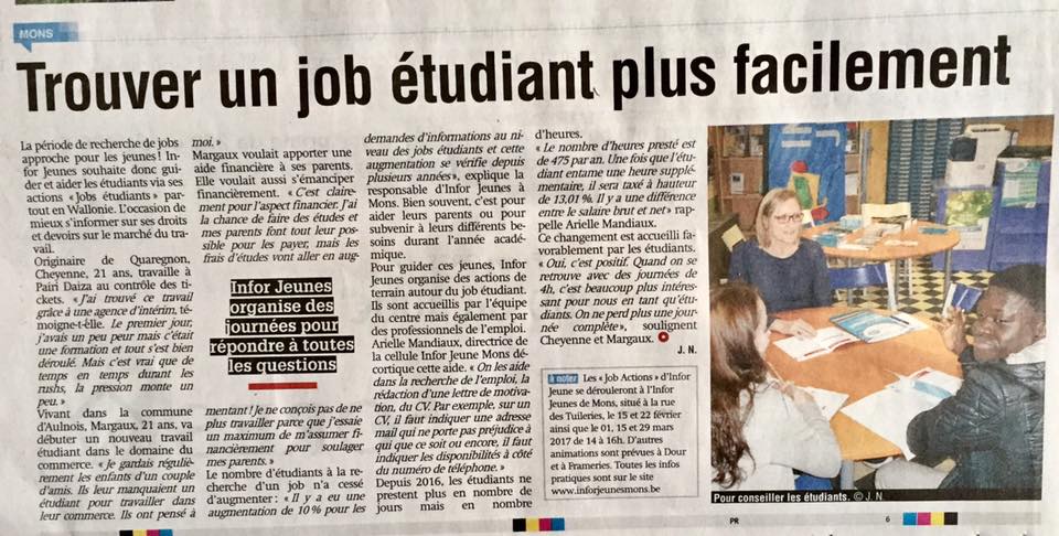 La Province : 11-02-2017 Trouver un job étudiant plus facilement